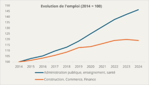 - Le taux NEET (proportion de jeunes, ni en emploi, ni en études, ni en formation) atteint les 10% en 2024[2] (contre 6.5% en 2014).