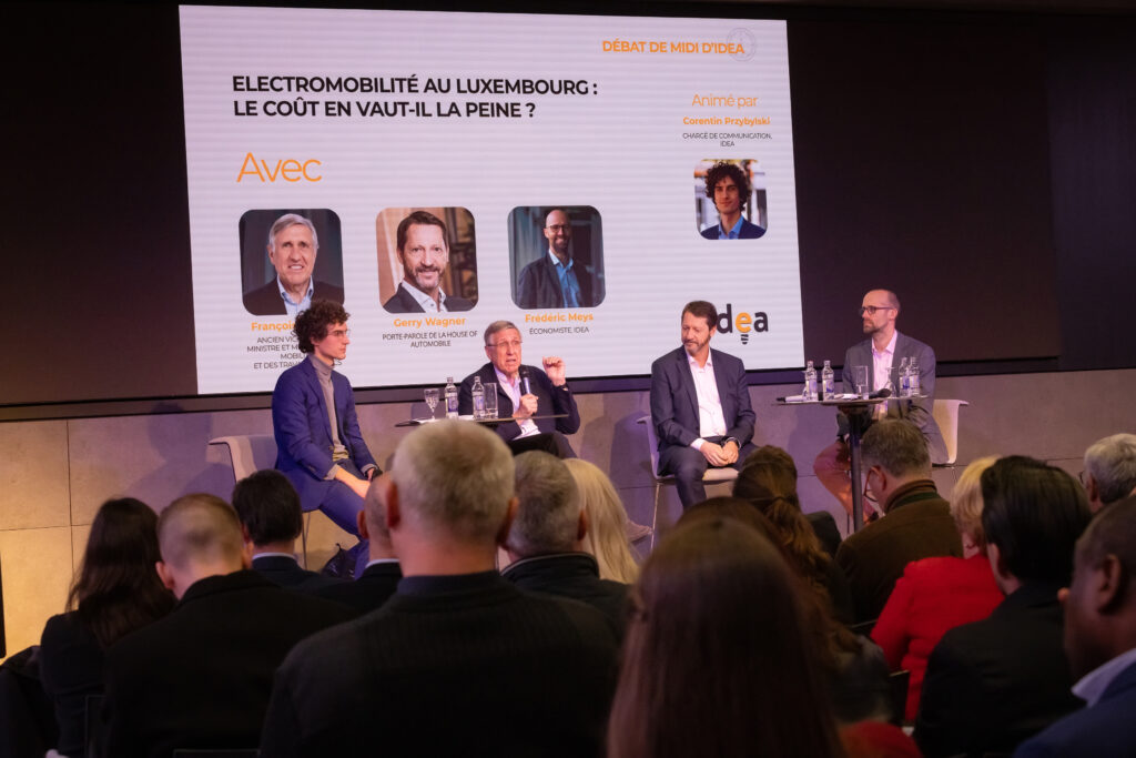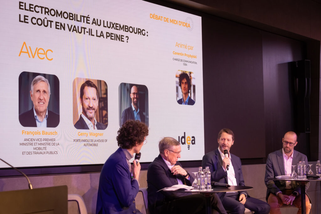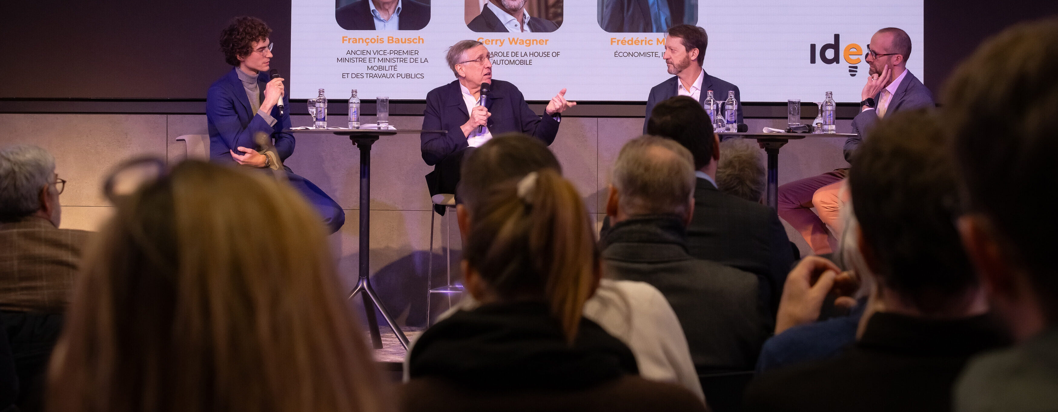 La présentation a été suivie d’une table-ronde animée par Corentin Przybylski, réunissant François Bausch, ancien Vice-premier ministre et ministre de la Mobilité et des Travaux publics, Gerry Wagner, porte-parole de la House of Automobile, et Frédéric Meys. Ensemble, ils ont débattu des freins actuels à l’adhésion à la voiture électrique, des politiques nécessaires pour accélérer la transition, ainsi que des enjeux industriels européens et des défis liés à la mobilité au Luxembourg et dans la Grande Région.